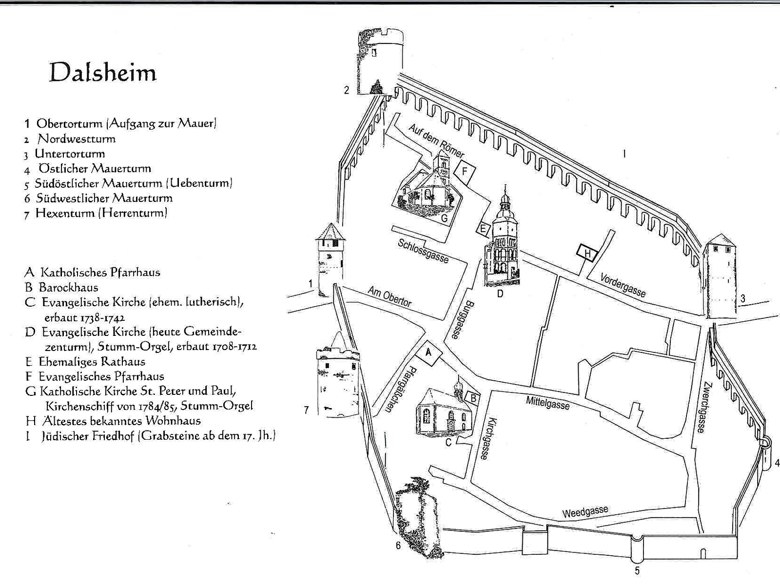 The stain wall is the only preserved medieval local fixation and doesn't has its name because it's dirty or because its structure has a special and diverse pattern. In fact it surrounds the former spot Dalsheim, which was provided really early with the privilege of the marketplace law. The people of Dalsheim got the building lease on the stain wall already in 1395. The 1100 meters long with unhewn limestones that has a highest point of ten meters, still has its seven towers today. Only the two gates were laid down in 1840 and therefore the defense function was ceased. Today the wall can be experienced and walked as a part of guided tours. Beside that there are various theme and special tours over the year concerning the lively history of the constructión.