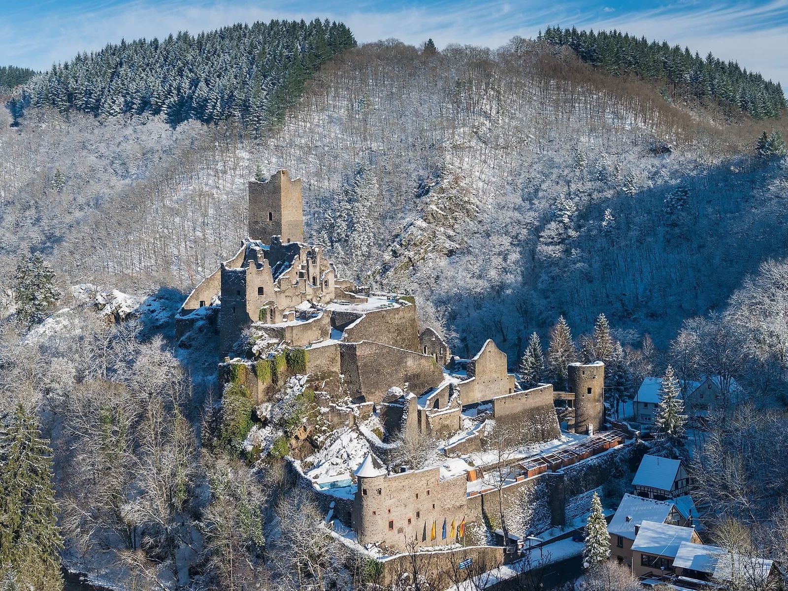 Die frei zugängliche Oberburg mit ihrem fünfstöckigen Burgfried wirkt noch heute martialisch. Die Niederburg kann mit Führungen – sogar nachts – oder auf eigene Faust erkundet werden, nur bei schlechtem Wetter bleibt sie geschlossen. Sie wurde im 12. Jahrhundert vom Adelsgeschlecht der Herren von Manderscheid zu einem prachtvollen, befestigen Herrschaftssitz ausgebaut.
