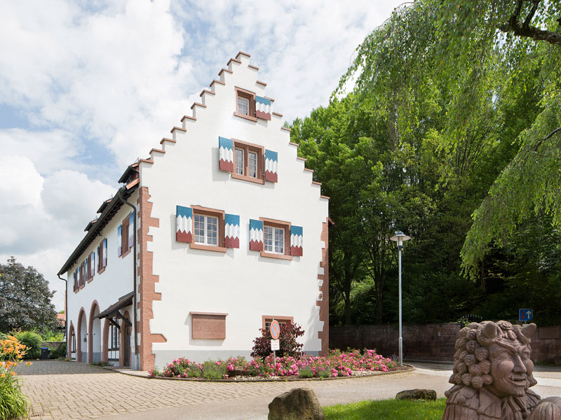 Das Gebäude mit Staffelgiebel ist mit der frühesten Jahreszahl 1578 datiert und vielleicht schon als Verwaltungssitz der ortsherrlichen Familie Stürtzel von Buchheim erbaut worden. Diese hatte das Dorf Heimbach 1527 vom Kloster Schuttern erworben, das nach seiner Zerstörung im Bauernkrieg 1525 viel Geld für einen Wiederaufbau brauchte. Eine weitere Jahreszahl (1670) erinnert an einen späteren Besitzer Heimbachs, den kaiserlichen Rat Hans Wilhelm von Goll, der wegen seiner Verdienste beim Friedensschluss von Münster - Beendigung des 30-jährigen Krieges - geadelt worden war.