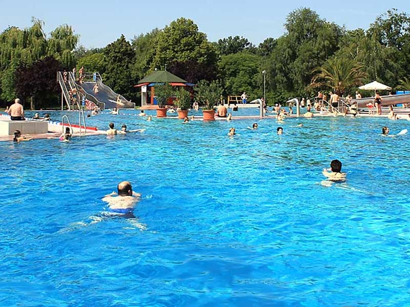 Während der Badepausen können Sie weitere Freizeitangebote in unserem Freibad nutzen oder sich auf den großzügig angelegten Liegewiesen erholen. Hier bieten zahlreiche Bäume Schatten und Schutz vor der Sonne. Auch die in großer Zahl vorhandenen (Liege-)Bänke und Sitzmöglichkeiten am Becken und auf den Liegewiesen laden zum Verweilen ein.