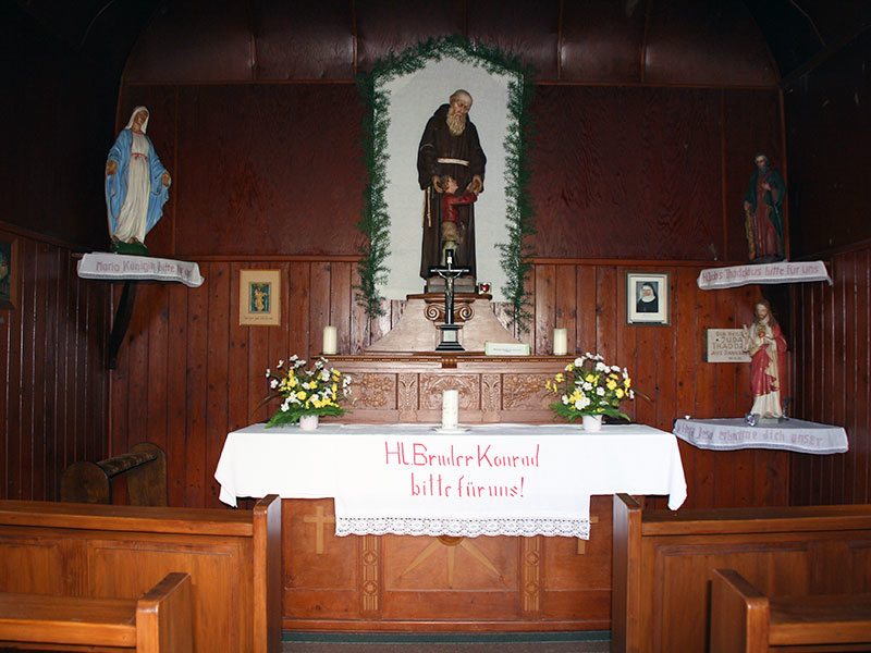 Möchten Sie einmal selbst Kapellenglocken läuten? Dann empfehlen wir Ihnen einen Besuch der Konradskapelle, dort dürfen Sie das. Die Kapelle thront malerisch am Waldesrand und gewährt Ihnen zudem herrliche Blicke auf die Burgruine „Hohengeroldseck, den Lützelhardt und die Gemeinde Seelbach. Dem heiligen Konrad von Parzham gewidmet, wurde sie 1937 mit Privatmitteln auf dem Gelände von Josef und Rosa Schuhmacher erbaut und am 11. Juli 1937 feierlich eingeweiht. Viele Votivtafeln im Innern mit Danksagungen für diverse Hilfestellungen des Heiligen Konrad von Parzham bezeugen die tiefe Gläubigkeit der Menschen, die hier leben. Jedes Jahr wird mit einem Gottesdienst an Bruder Konrad erinnert.