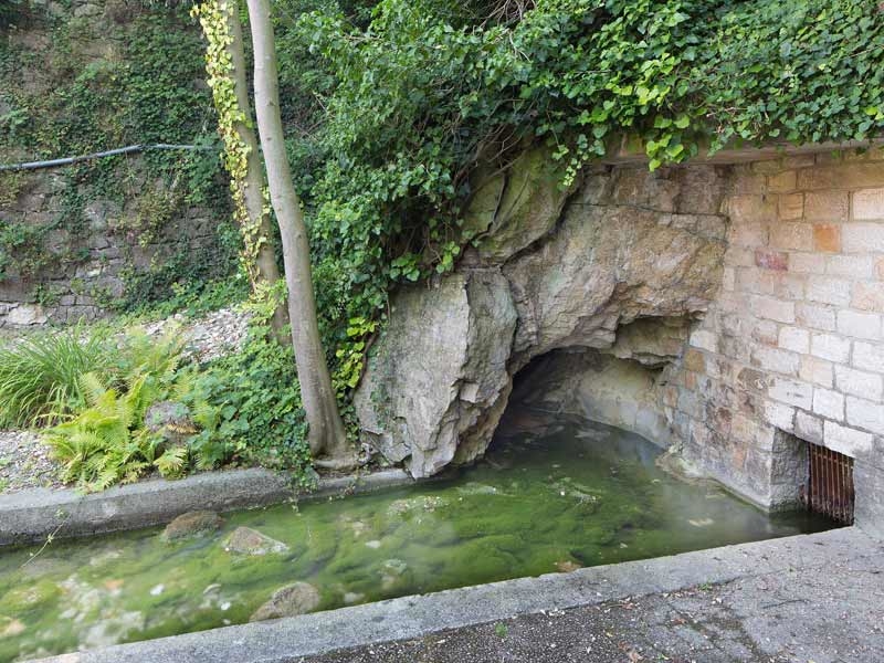 The spring which is fed by aquifers from the river Neumagen and was previously protected by a high embankment was credited with having miraculous powers. From looking at the pictures on the Fridolin altar in the church, it is possible to deduce that St Fridolin, who was active as a missionary here, preached to and baptised members of the congregation in the 6th Century. As late as the 18th Century, suckling babies are thought to have been dipped into the spring water here before their formal baptisms in the church. The spring also provides the water supply for the village. As long ago as 1866 the municipality constructed a central water supply system which was fed by the spring.