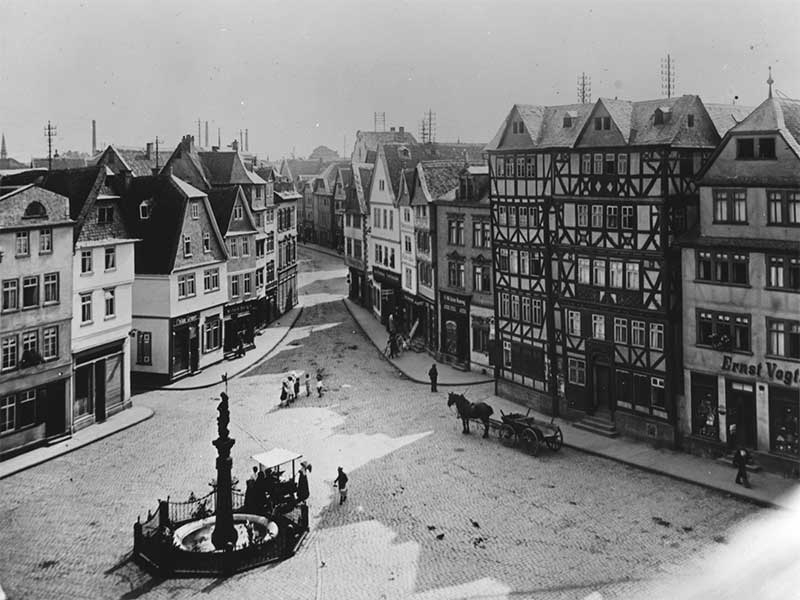 The Butzbach Market Square has been the centre of urban life since the city foundation in 1321, close to the much older town, which was first documented in 773 as the village called “at the brook of bodo”. The market square with its’market fountain, the city municipal building (1559/60) as well as numerous remarkable half timbered houses, is one of the most beautiful and well known squares in Hesse (redesigned in 1986/87). The market fountain (first mentioned in 1395) had running water (contrary to other fountains in the city). Several of the houses surrounding the square are even older than the municipal building (e.g. Marktplatz No.18, which in parts dates back to the 14th century).