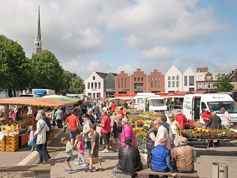 Das samstägliche Treiben gibt es heute noch, aber mit neuen Inhalten. Bis zu 120 Händler bieten auf dem traditionsreichen, seit über 500 Jahren stattfindenden Wochenmarkt ihre Ware an: frische regionale Produkte, Backwaren, Blumen, Nützliches für Haus und Hof oder auch lebendes Geflügel und Kleintiere. Einkaufen, Freunde treffen, sehen und gesehen werden – am Samstag trifft sich hier ganz Dithmarschen. Der Markt ist von 7.00 - 13.00 Uhr geöffnet.