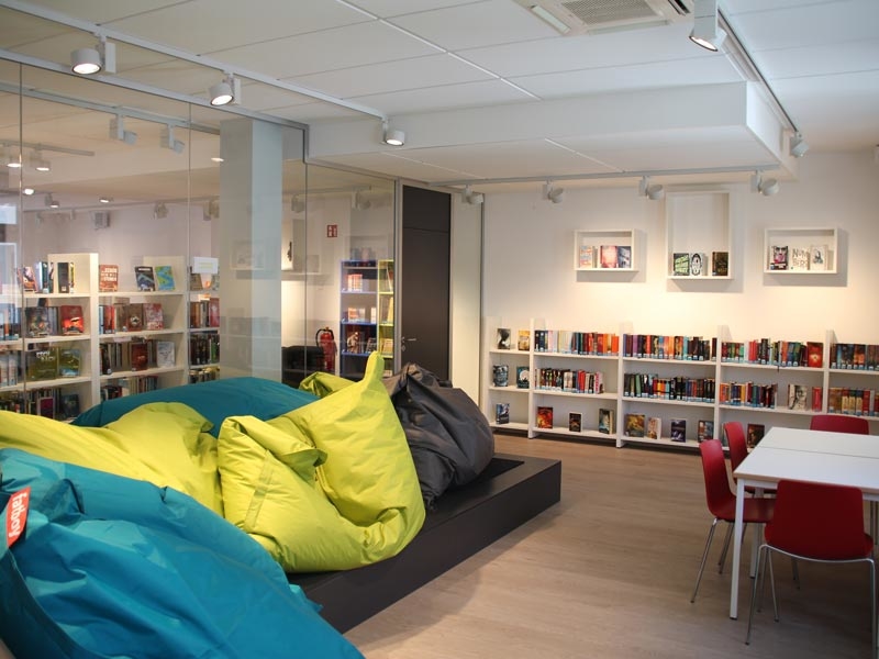 Die Mediathek bietet für jeden etwas an: Aktuelle Bestseller sowie Medien zu wichtigen gesellschaftlichen kulturellen und naturwissenschaftlichen Themen sind ebenso erhältlich wie Ratgeberliteratur für jeden Bedarf. Neu: Die Kinderabteilung und die Jugendabteilung haben getrennte Bereiche erhalten. Der Eingangsbereich ist sowohl für die Besucher des Kinos als auch für die Besucher der Mediathek gedacht. Auch die Theke ist als „Raum im Raum“ für beide Nutzergruppen konzipiert. Der linke Teil der Theke ist für die Besucher der Mediathek gedacht, der rechte für die Kinogänger. Als Ort der Information bietet die neue Mediathek am Bahnhof neben Unterhaltung zur Freizeitgestaltung auch unverzichtbare Dienstleistungen für Aus-, Fort-und Weiterbildung sowie regelmäßige Lesungen an.