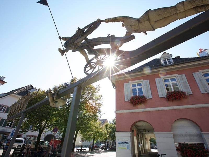 A large sculpture by Peter Lenk, dedicated to the Baden Revolution, was presented to the public in 2004. The artwork features Emma Herwegh, Gustav von Struve, Friedrich Hecker, “68er” activist Fritz Teufel, and modern state power in the form of Erwin Teufel.