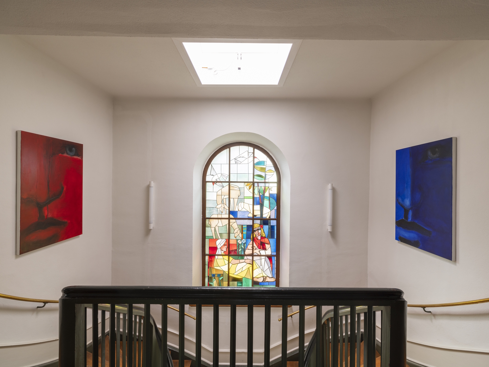 A glass window designed by honorary Schopfheim citizen Professor Hans Theo Baumann can be seen in the stairwell. To the left and right of the staircase hang two works by artist Mark Roland Fuchs. In the upstairs hallway is a relief by Schopfheim artist Otto-Erich Döbele; more works by this artist can be admired at his birth house, at Hauptstraße 103.