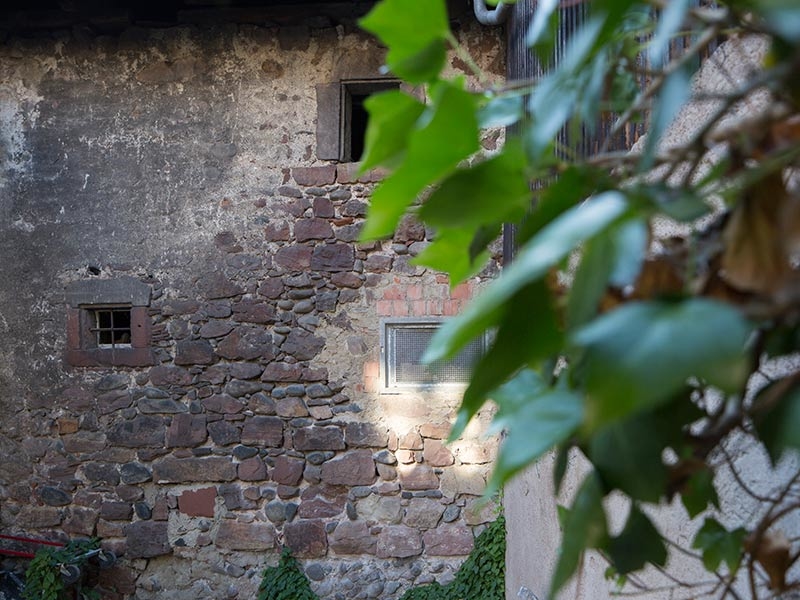 Of the town’s original fortifications, constructed around the year 1250 after Schopfheim was granted town status, only this small portion remains. It served as the back wall of a farm building. The town’s walls featured two gate towers and four fortress towers.