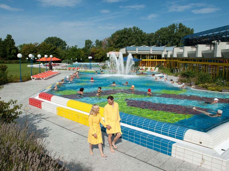 The Thermarium Wellness and Health Park is, with its 1400 square meters area of healing water, the biggest thermal spring in the south of Baden. The “Bad Schönborner Thermal and Brine springs” come from a depth of 630m and offer optimal healing effects for rheumatologic and orthopedic illnesses – at warming 43 degrees water temperature.