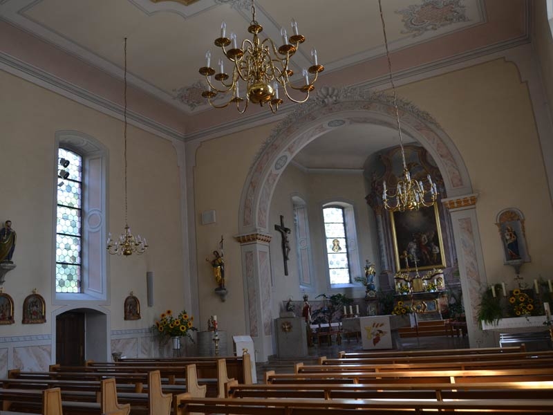 The church dedicated to St. John the Baptist, because River Möhlin flowed directly past the church around 200 years ago. The most valuable piece in the church is a large altar picture by Simon Göser (1735- 1816). It shows Jesus' baptism by John.