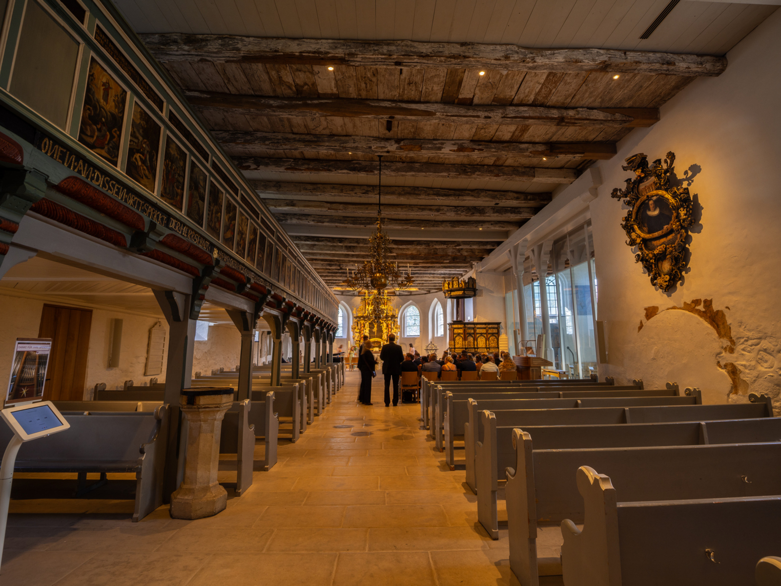 Im Inneren der Kirche lässt sich eine Vielzahl an Darstellungen biblischer Motive entdecken. Das Herzstück der Kirche bildet der Barockaltar, den der Hamburger Altarschnitzer Valentin Preuß 1699 anfertigte. Der Maler Johann Holte erzählt mit seinen Bildern die Passions- und Ostergeschichte, das letzte Abendmahl und die Kreuzigung Jesu. Die Kanzel spiegelt ihre Entstehungszeit in der Renaissance wider. Die Empore ist nach einer Vorlage der Merian-Bibel des weltbekannten Kupferstechers Matthäus Merian bebildert. Grabplatten vor der Kirche, insbesondere die eines 1713 verstorbenen russischen Fürsten, erinnern an lange zurückliegende historische Ereignisse.