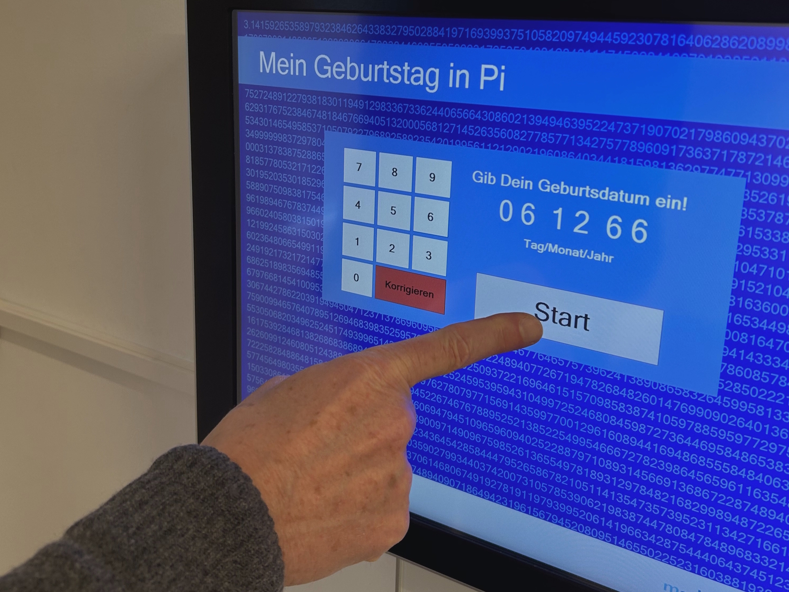 Die Zahl PI hat die interessante Eigenschaft, dass jedes Geburtsdatum (TT/MM/JJ) an irgendeiner Stelle versteckt ist. Finde mit Hilfe unseres Exponats heraus, an welcher Nachkommastelle Dein Geburtsdatum versteckt ist.