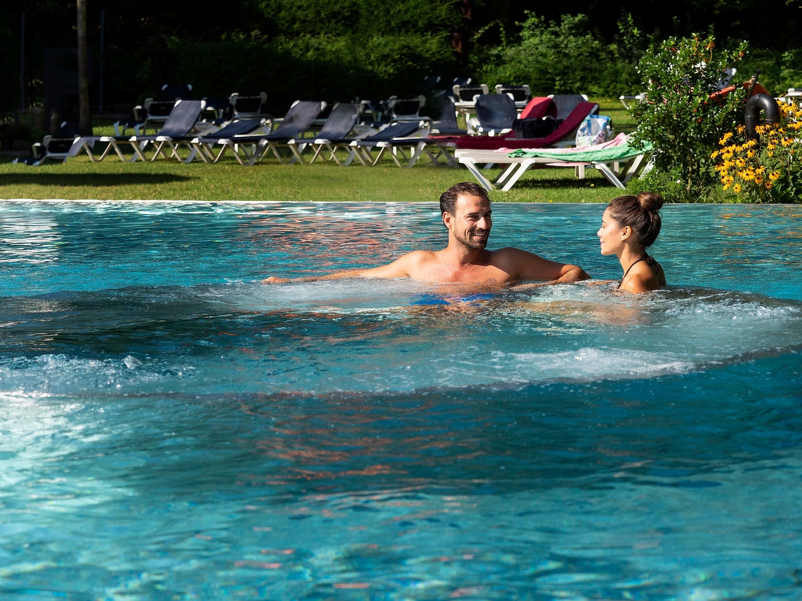 A natural thermal spring feeds the four indoor and outdoor thermal pools with a counter-current system, water fountain and bubble loungers. The sauna area, which is designed to meet a variety of needs, a small, cosy wellness department as well as a spa area with a wide range of therapies offer ample opportunity to relax. Everyday life is left at the door. Here, you can indulge all your senses.