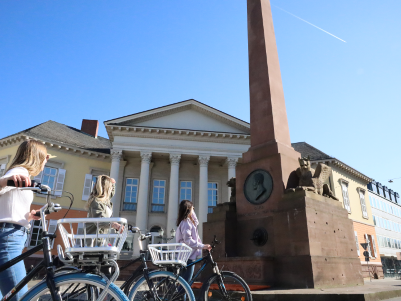 Geplant als Machtsymbol Badens wollte man ursprünglich die Distanzen zu verschiedenen badischen Städten von Karlsruhe in die heutige Verfassungssäule eingravieren. Die Verfassungssäule wurde von 1822 bis 1827 nach Entwürfen Friedrich Weinbrenners errichtet. Bestehend aus rotem Sandstein ragt die Säule in der Mitte des Rondellplatzes 7,80 Meter hoch in den Himmel. 1832 wurde die Säule nach dem Tod seines Nachfolgers dem Großherzog Karl gewidmet, der einst die badische Verfassung unterzeichnete, eine der liberalsten seiner Zeit. Die Säule trägt die Inschrift "Dem Gruender der Verfassung die dankbare Stadt Carlsruhe".