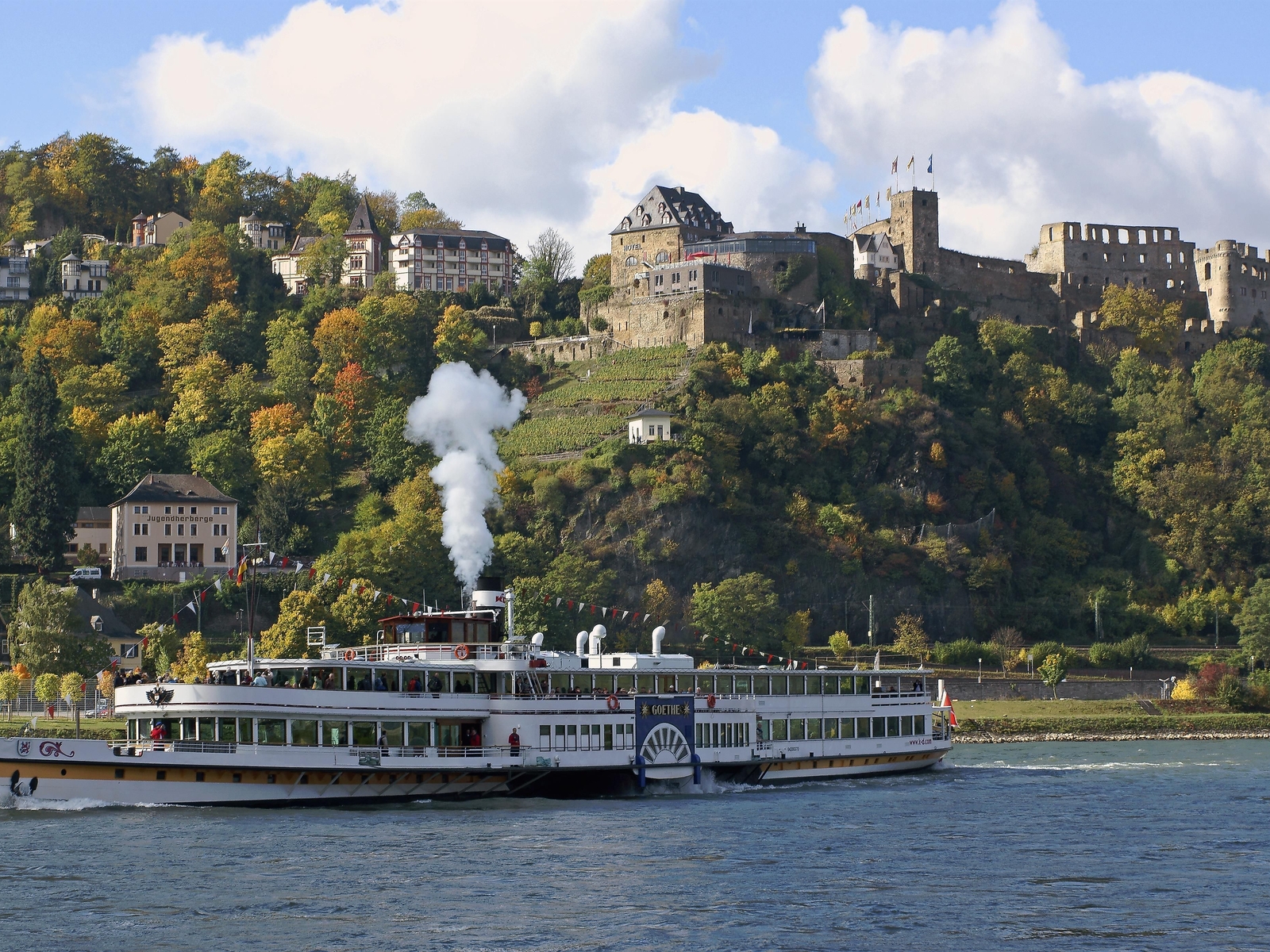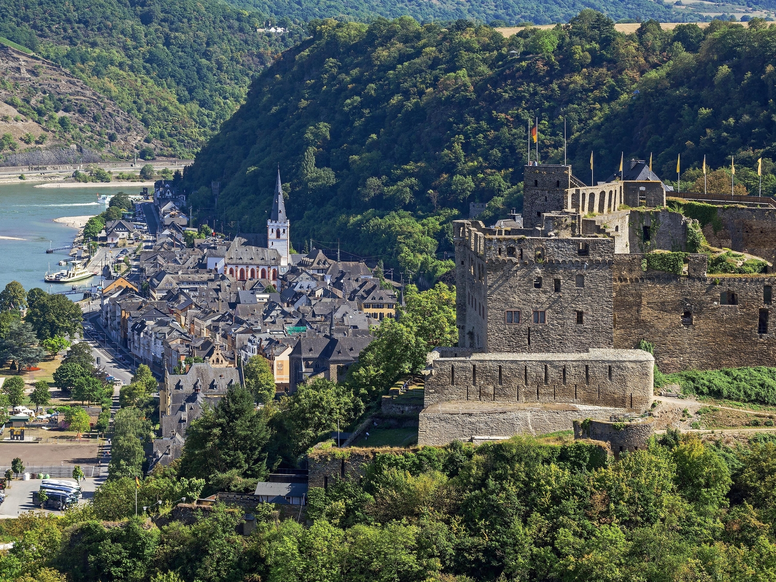Built in 1245 by Count Dieter V of Katzenelnbogen in St. Goar, Rheinfels Castle today represents the largest castle and fortress ruin on the Middle Rhine. As one of the few bulwarks on the Rhine, it was unsuccessfully besieged in both the Thirty Years’ War and the Palatine War of Succession, and not destroyed. So, the fortress was able to bear up against a 28,000-strong French army. It’s particularly its status as a residential castle and development to an extensive fortification that make Rheinfels Castle among the most important fortified sites on the Middle Rhine. Visits to the imposing ruins and various tours are possible; tasteful accommodation can be found in the romantic hotel adjacent. Hikers can reach Rheinfels Castle directly via the RheinBurgenWeg trail.