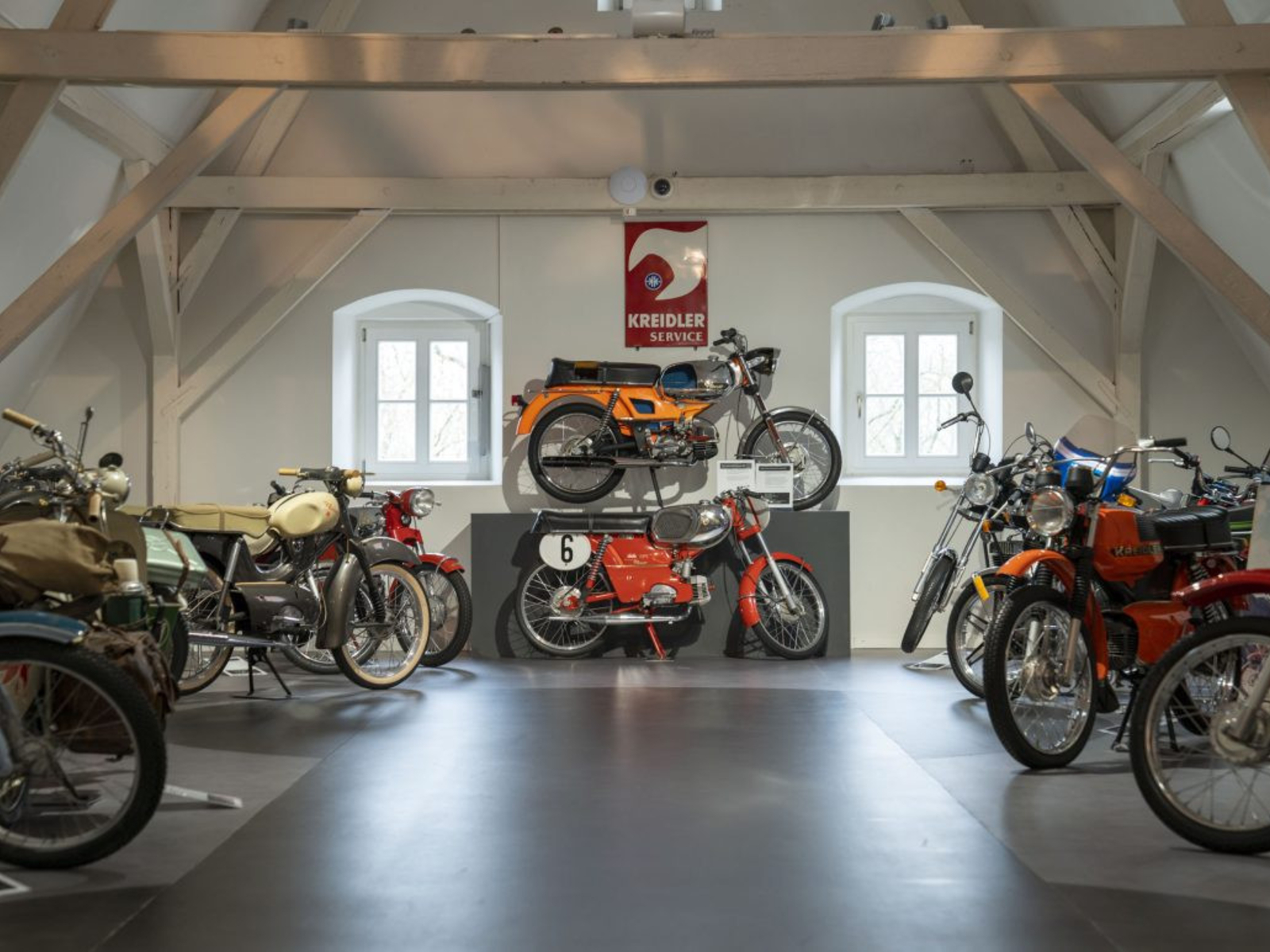 For once, you will not only encounter two-wheelers here, but also the legendary NSU cars: Prinz models, Wankel Spider and the first "Car of the Year," the Ro 80. **The Swabian cult brand:** **Kreidler factory collection**