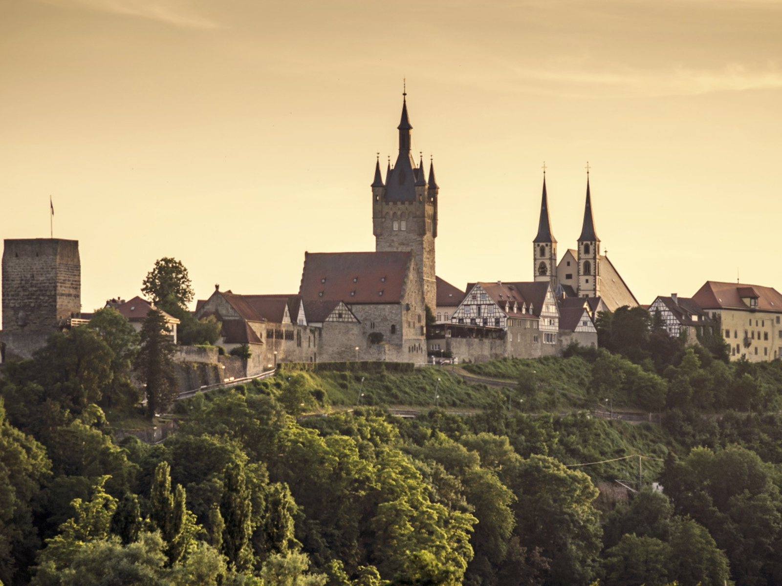 Experience precious, cozy moments—in "Germany's Most Beautiful Old Town" (TRAVELBOOK AWARD 2025), the former Staufer imperial palace, and the saltwater spa on the Neckar Bad Wimpfen is the winner of the TRAVELBOOK AWARD 2025 in the category "Germany's Most Beautiful Old Town"! Dating back to the Staufer era is the architectural monument that still shapes the cityscape today: the largest royal palace north of the Alps, with its striking towers, the Steinhaus, the Hohenstaufentor, and the Pfalzkapelle. Additionally, the landmark "Blue Tower" and unique half-timbered houses define the cityscape.  ### Unique City Tours You can explore the multifaceted, historic Staufer Palace on a Staufer tour or an evening night watchman tour.  ### Cycling Hub in the Neckar Valley Bad Wimpfen am Neckar is an insider’s tip for cyclists, offering varied half-day and full-day bike tours along the [Kocher-Jagst Cycle Route](https://www.kocher-jagst.de/), the Castle Road Cycle Path, the [Neckar Valley Cycle Path](https://www.neckartalradweg-bw.de/), or the Salt & Brine Cycle Path. Diverse half-day and full-day cycling routes along the Kocher-Jagst Cycle Path or the Neckar Valley Cycle Path offer many destinations. ### Neckarsteig Quality Hiking Trail & Other Hiking Trails Hikers can enjoy the variety of hiking routes in Bad Wimpfen and, for example, set out on the St. James Pilgrimage Route or the Sole Circular Hiking Trail. The [Neckarsteig](https://www.neckarsteig.de), certified as a "Wanderbares Deutschland" quality hiking trail, leads hikers from Bad Wimpfen to Heidelberg. ### Sightseeing & Attractions In addition, attractions such as the Bad Wimpfen im Tal Monastery and the municipal museums are waiting to be explored.