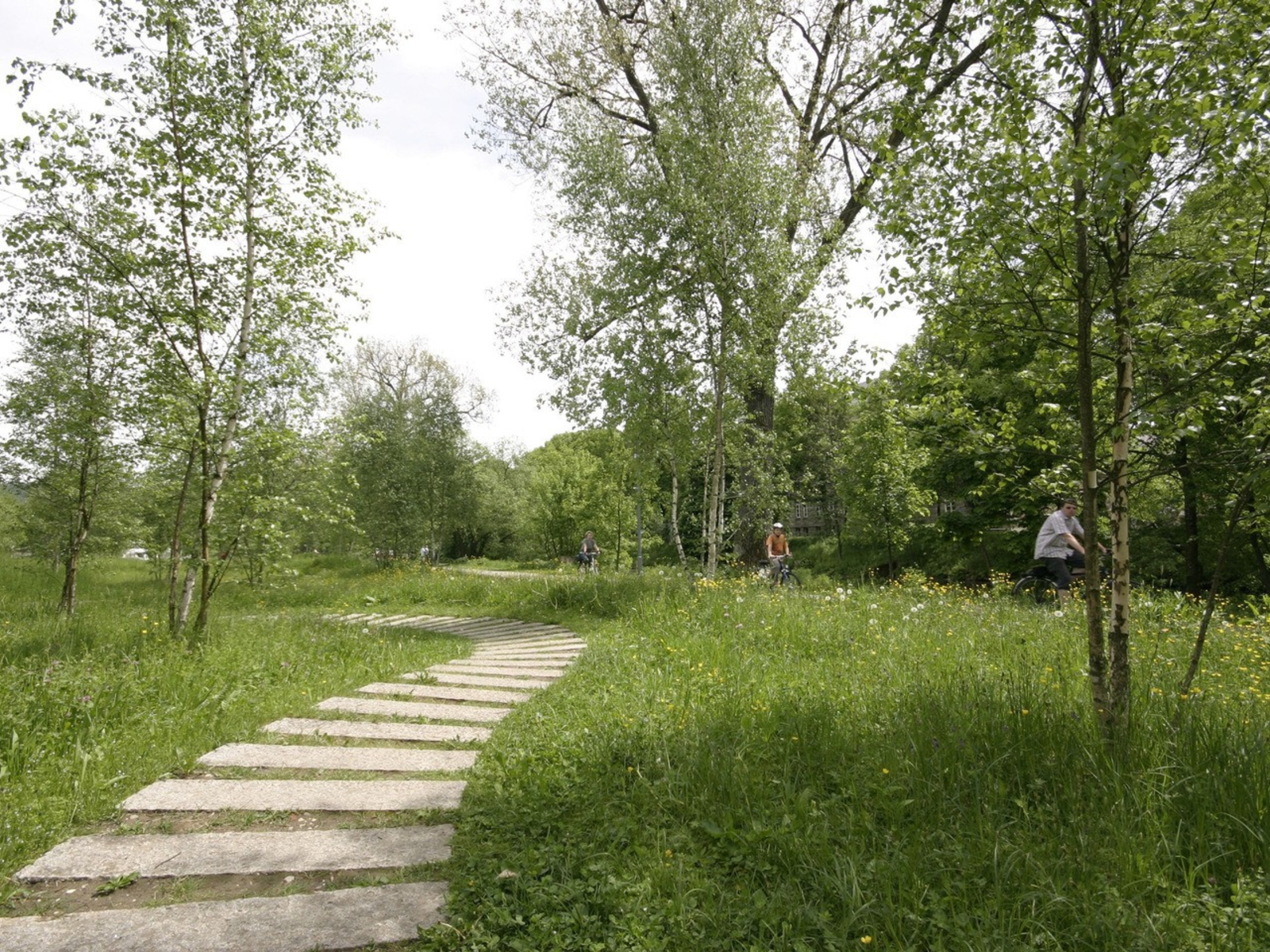 The Danube was given a new face in Tuttlingen in 2003 and has thus become a focal point for residents and visitors to the town. On the previously largely inaccessible banks of the Danube, people can now stroll and experience the river again. A continuous green corridor along the Danube, seating terraces, a boat rental and many places to linger by the water make the Danube an experience in the city. This applies to the area between the Große Bruck and the new city hall as well as to the northern bank of the Danube, where a "park by the river in the city" has been created with the support of the state.