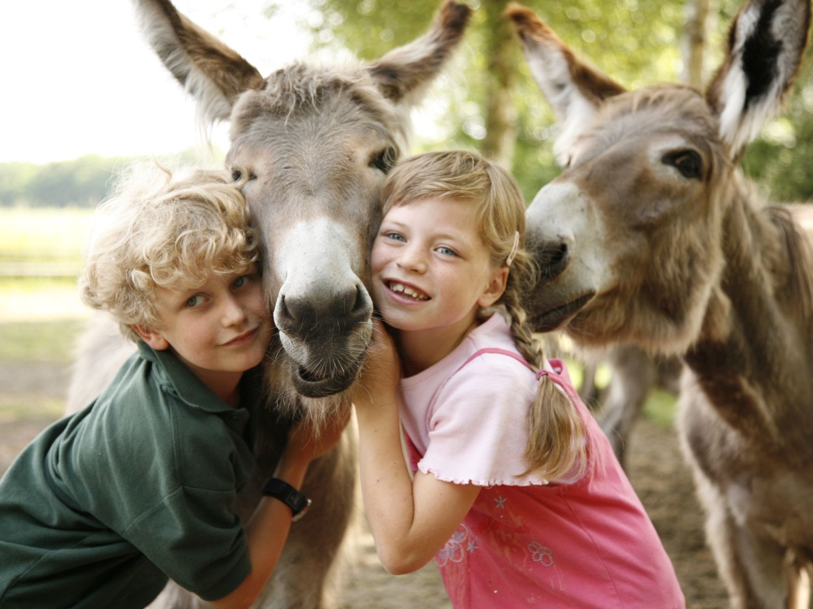 Zwei Kinder mit Eseln im LandPark Lauenbr?ck © LandPark Lauenbr?ck