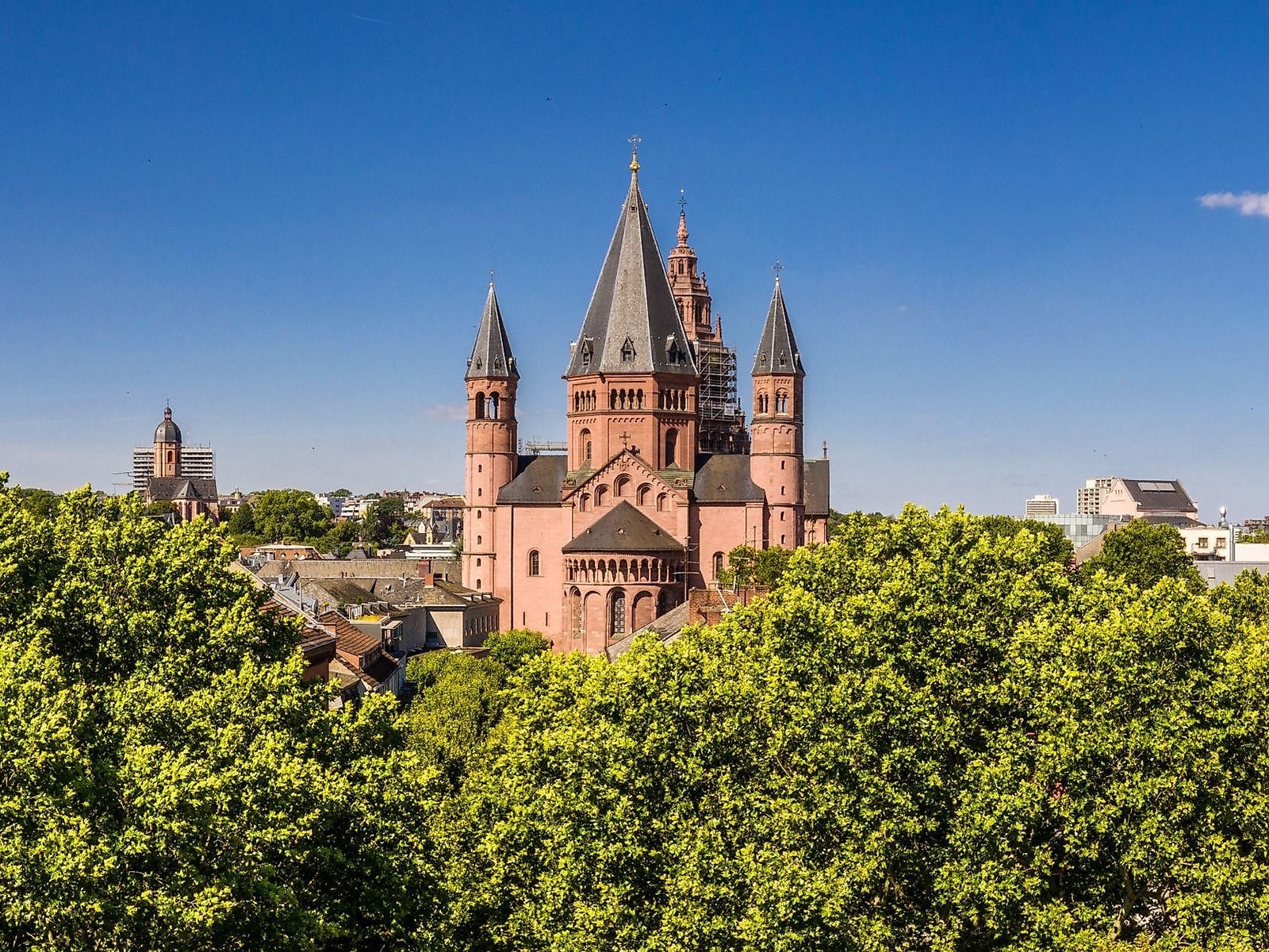 Der gewaltige Dom gibt auch tausend Jahre nach seiner Erbauung der Stadt ihr Gesicht, und er hat ihre Geschichte geprägt. Mainz, am Schnittpunkt alter Völkerstraßen, wurde mit dem Wirken des heiligen Bonifatius ab 746/47 zum kirchlichen Zentrum nördlich der Alpen; es erhielt den Titel "Heiliger Stuhl", als Willigis (975-1011) in Mainz regierte.