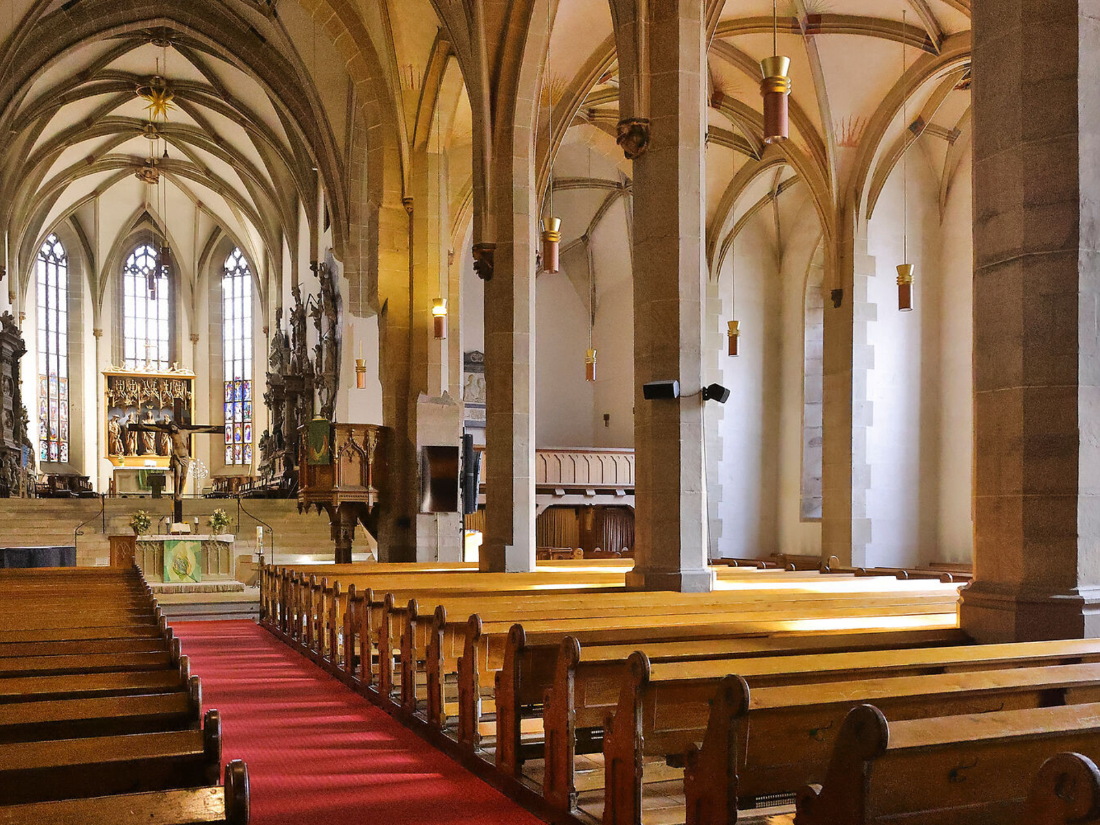 Die von 1457 bis 1497 erbaute spätgotische Stiftskirche St. Peter und Paul ist Wahrzeichen der Stadt Öhringen.