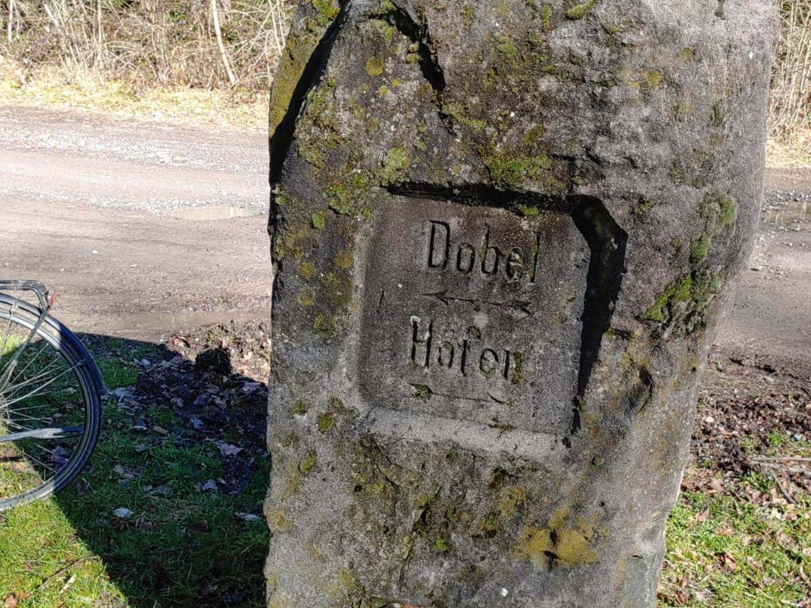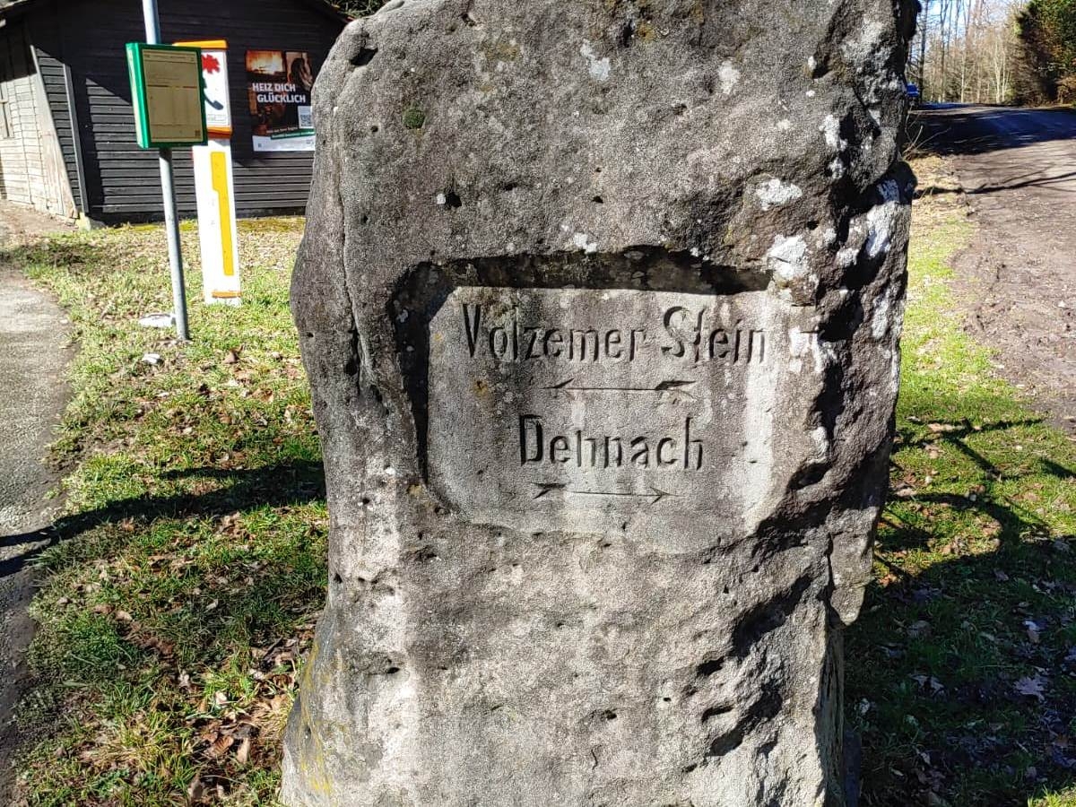 In der Nähe von hier grenzen gleich drei Gemarkungen aneinander: Dobel, Dennach (heute Stadt Neuenbürg) und Feldrennach (heute Gemeinde Straubenhardt). Allerdings ist dieser Stein ein historischer Wegzeiger für wichtigere Fahrstraßen und kein echter Grenzstein. Dieser stand etwa 400 m nördlich von hier und ist leider verschollen.