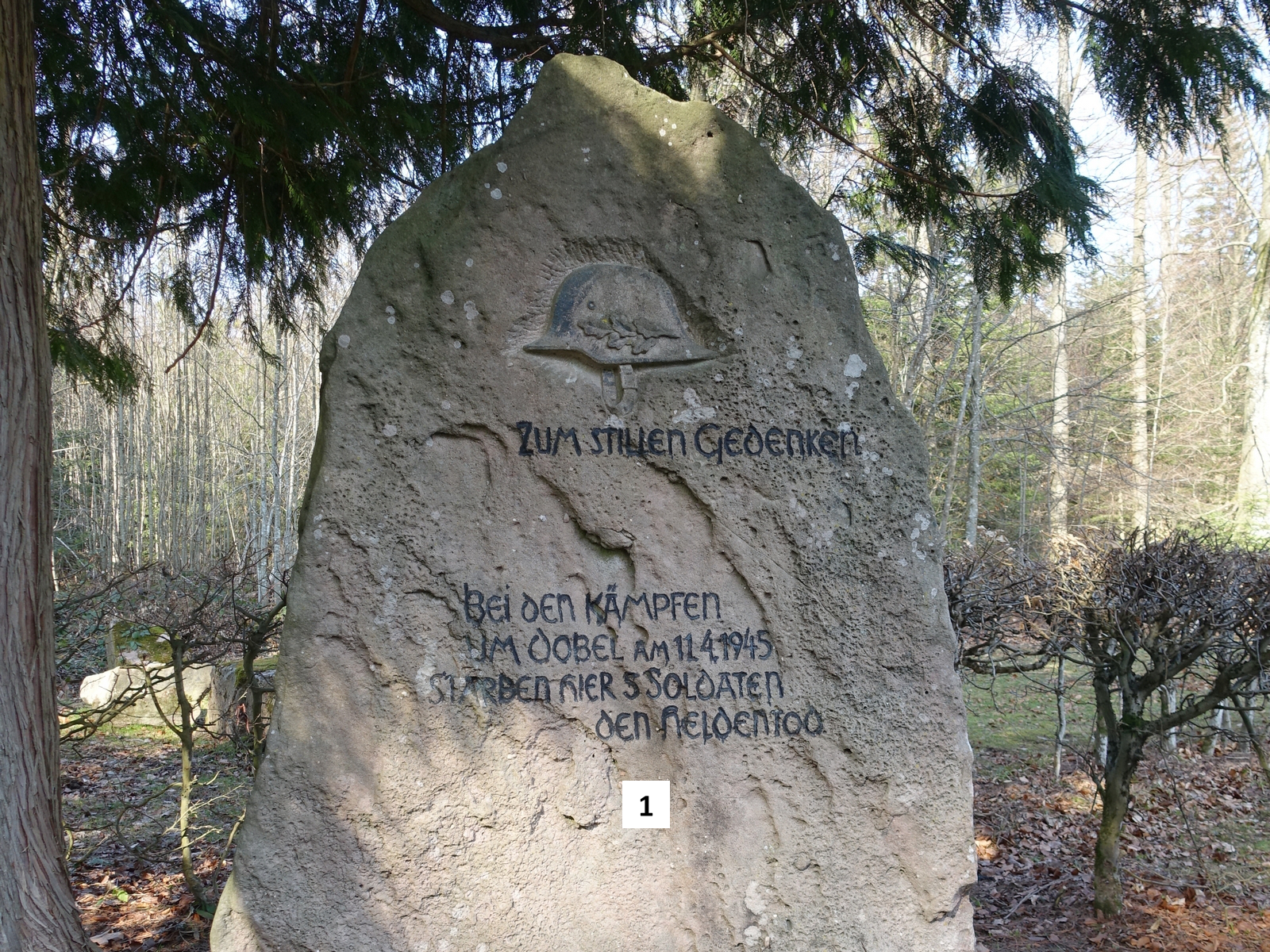 An der Südwestecke des Grillplatzes steht ein Gedenkstein aus dem Zweiten Weltkrieg.